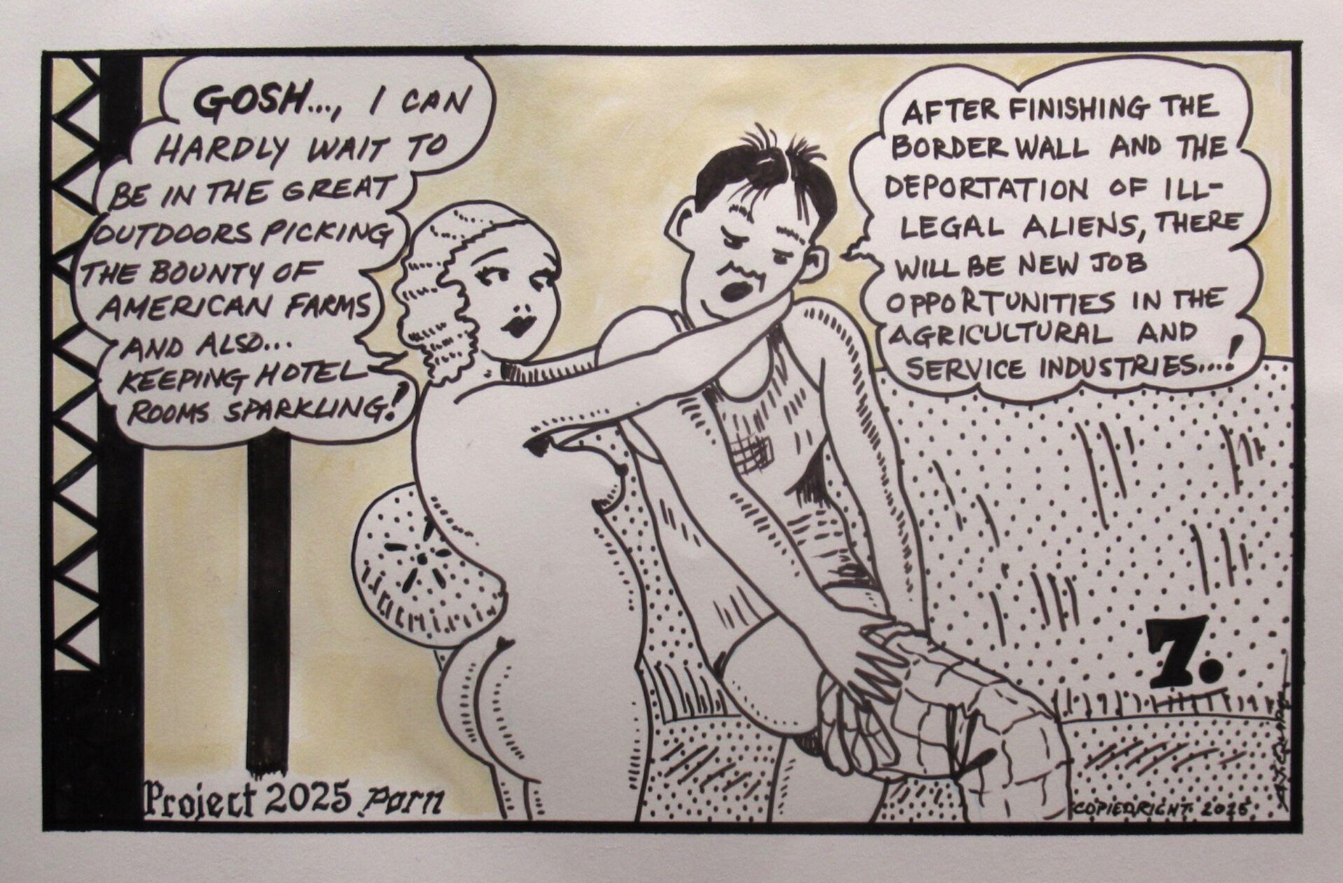 Pidgin Palace will exhibit “Rx: Suitable for Home and Office”, a collection of some of Alfred’s most confrontational, challenging and outrageous work along with a new body of work, Project 25 Porn, that borrows from the racy “Eight Pagers” (also known as “Tijuana Bibles”) of Alfred’s younger days, some of it spent behind the trigger of a 5 inch gun off the coast of Vietnam.